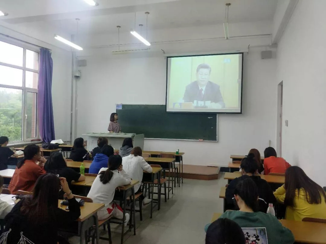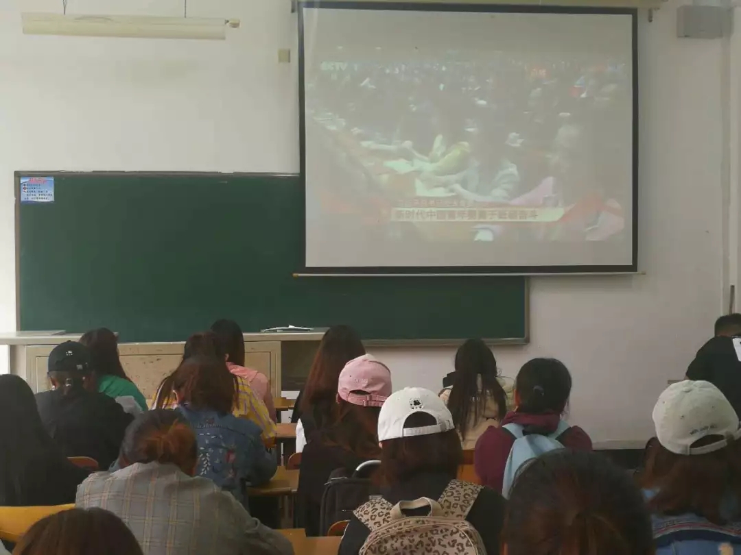 然后,各团支部书记带领同学们一起通过视频短片回顾了五四运动,同时,大家还观看了习近平总书记在纪念五四运动100周年大会现场的讲话视频,认真学习了习近平总书记的重要讲话精神。