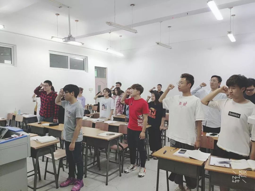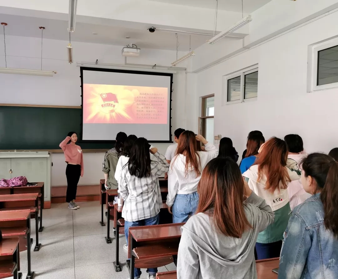 在以“青春心向党,建功新时代”为主题的班会上,首先由各团支部书记带领同学们庄严宣读中国共产主义青年团入团誓词,接着同学们全体起立,唱响中国共产主义青年团团歌