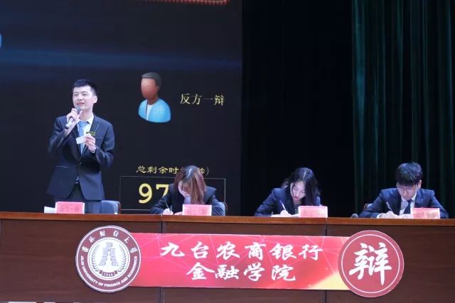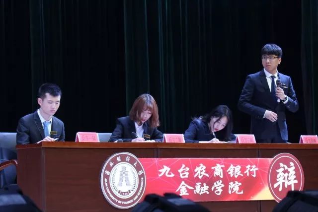 在现场的热烈掌声中决赛正式开始,正方工商管理公司,反方九台农商银行yl23455永利登场,双方同学口号响亮,热情高涨,将现场气氛推向高潮。