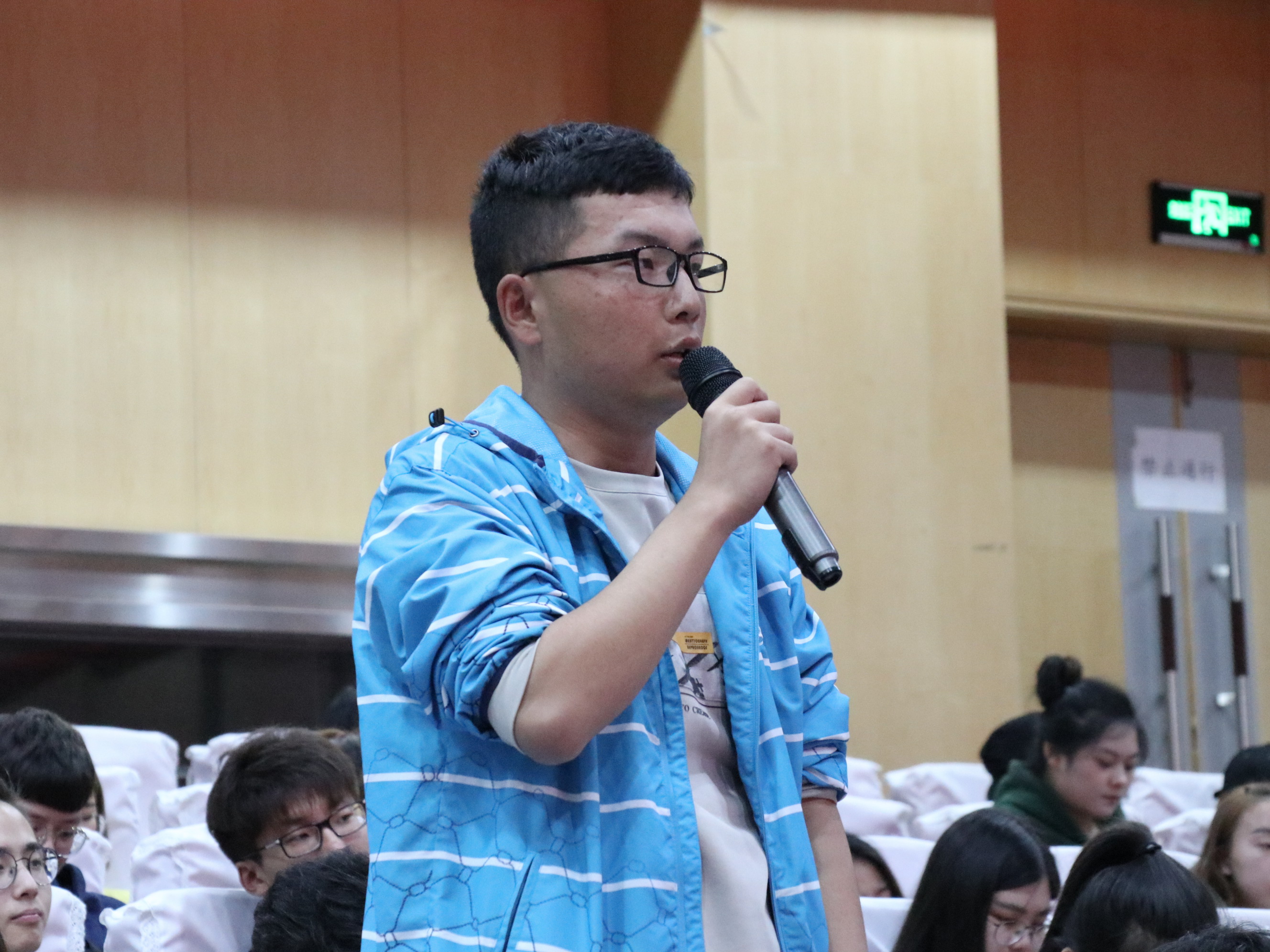 其后,宋老师通过问答的方式与员工们深入探讨关于员工会和信仰等问题。对于员工们“是否加入员工会,加入员工会怎么做”的问题,宋老师以往届优秀员工干部葛一鸣学长与冷新宇学长为例,鼓励员工在员工会中成长,并给出“想干”、“能干”、“会干”三点建议,他指出,“‘想干’是基本要求,‘能干’是重要保证,‘会干’是核心标准。”宋老师寄语新生,坚定理想信念,保持初心。