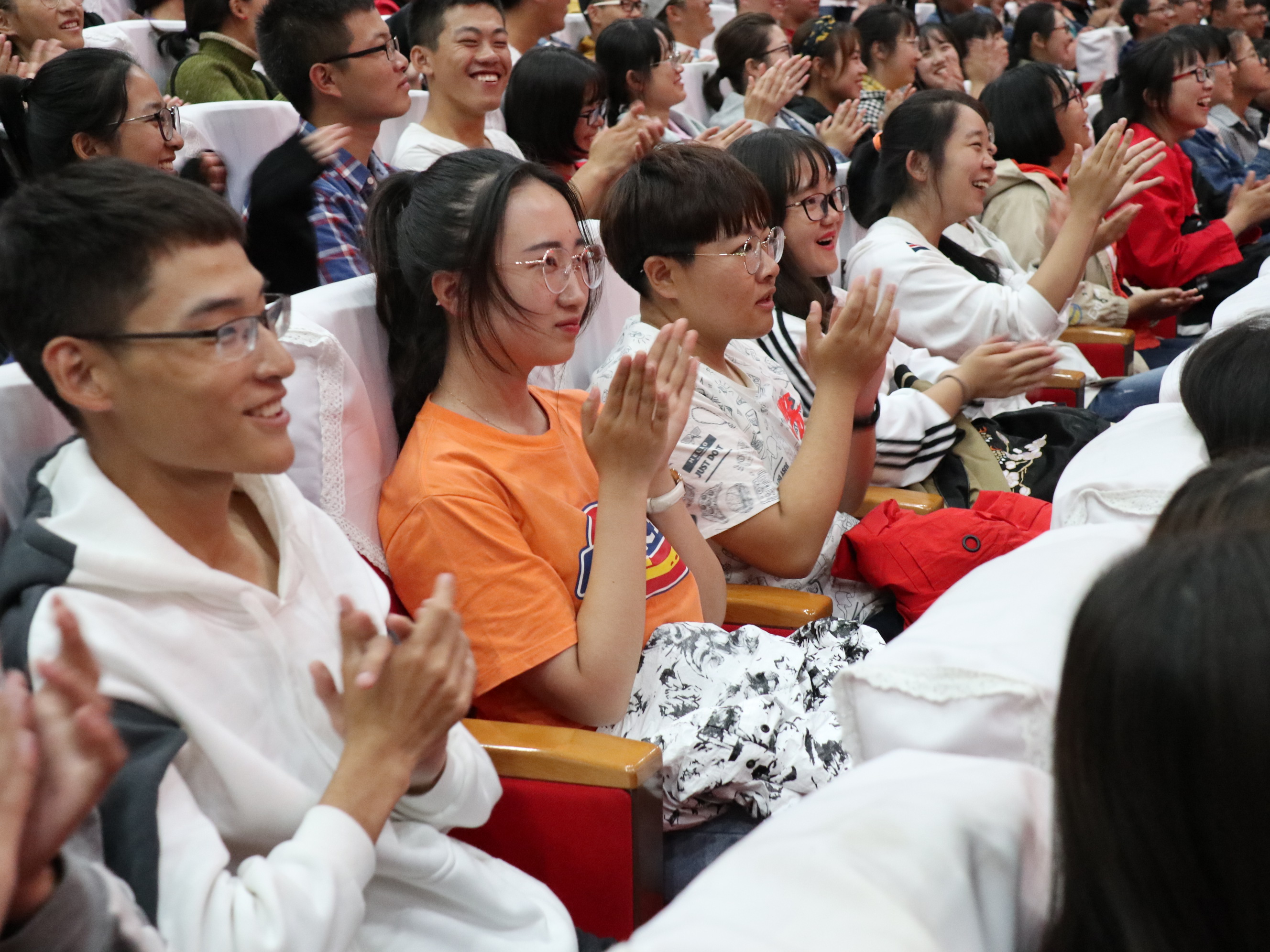 报告中,宋老师从独立、规矩、学习等角度切入,深入浅出的讲解了2018级新生们在大学期间应当具备的能力和注意的方面。宋老师以国为例,教育新生要有独立意识。他强调要在大学期间学会独立思考、学习和生活,遵守公司规矩,不要在沉迷于电视剧和游戏,坚持不断学习,掌握学习能力。宋老师通过“体育课不逃”、“法律课不逃”、“专业课不逃”的三不逃,教育新生要学会独立思考和理性判断,合理充分的利用自己的大学时间。在生活方面,宋老师也为2018级新生给出了自己的建议,并希望新生们能够处理好师生、室友、同学这三种关系。伴随老师风趣幽默的讲话,新生们在笑声中开启了自己的老员工活。报告随着宋老师的新生寄语圆满落幕。