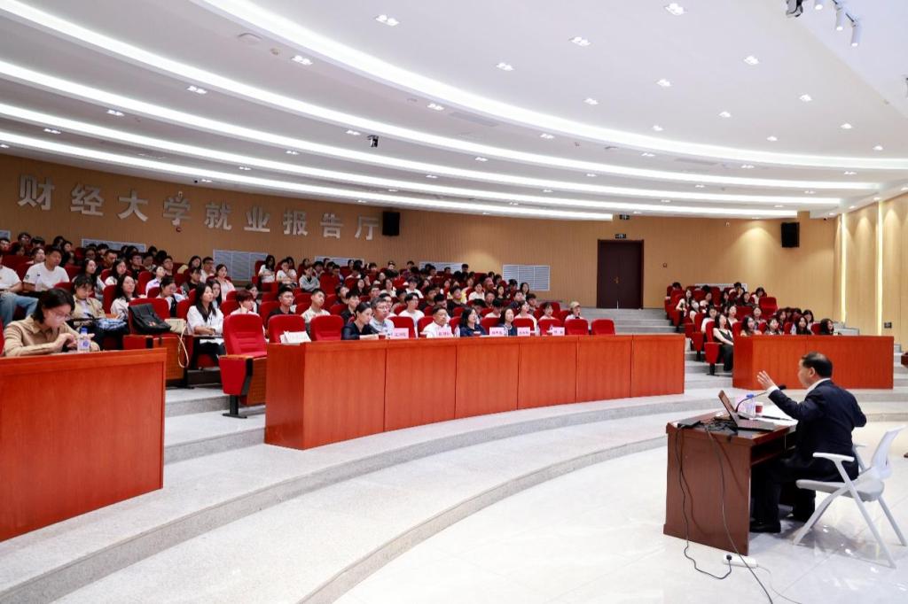 最后,宗良在第一教学楼为吉林财经大讲堂第三十七讲作了《全球经济金融热点与“中国经济学”的探索》主题学术报告。宗良以全球视野,对当前全球经济金融形势进行了全面深刻的剖析。他指出,当前全球经济正面临多重挑战,包括国际贸易环境的不确定性、全球供应链的重构、主要经济体货币政策分化以及地缘政治风险加剧等,中国经济在全球经济变局中面临着挑战与机遇。他指出,面对外部环境的不确定性,中国经济展现出强大的韧性和潜力,通过深化改革开放、推动高质量发展、加强创新驱动等举措,为全球经济复苏注入了重要动力。但是中国也需警惕外部风险传导,加强风险防范和应对能力,确保经济持续健康发展。宗良博士深入探讨了“中国经济学”的概念及其发展脉络。他强调,“中国经济学”是基于中国国情和实践经验,旨在揭示中国经济运行规律、指导中国经济实践的理论体系。提出有效市场与有为政府结合的中国故事提供了理解市场与政府关系的钥匙,中国经济的成功实践将为世界经济发展提供一个全新的“市场经济国家”模式和标准。