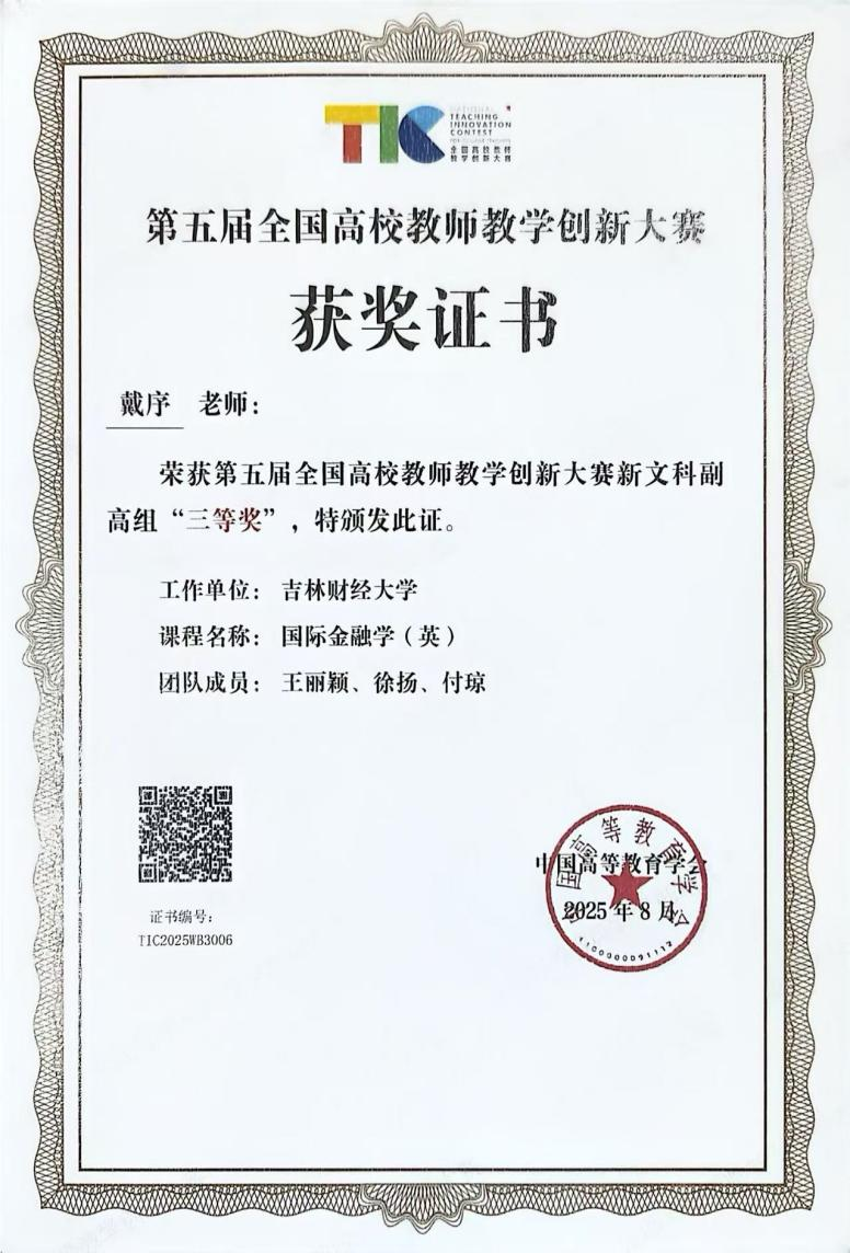 8月19日,由教育部高等教育司指导、中国高等教育学会主办的第五届全国高校教师教学创新大赛全国现场赛在北京理工大学落下帷幕。公司yl23455永利戴序教师团队凭借扎实的教学功底和创新的教学设计,荣获新文科副高组三等奖,也是公司教师首次晋级该项赛事全国总决赛并获奖。