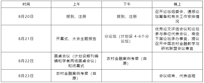 征文截止2021年7月31日。请将论文发送至ruralfinance2021@163.com(会务组邮箱),入选论文通知将于 2021年8月10日之前正式发出,收到通知后及时回复是否参会和是否报告论文(报告论文的作者提前准备发言不超过 15 分钟的 PPT)。