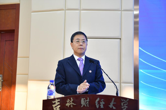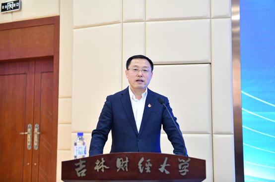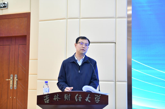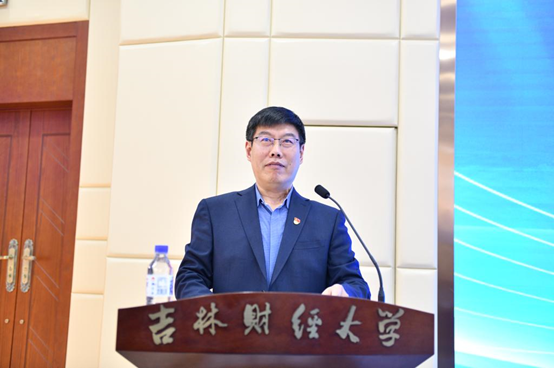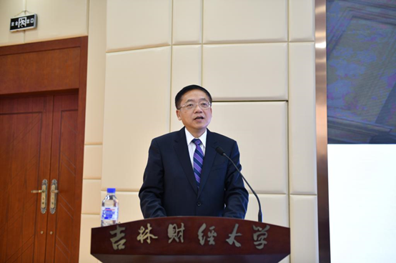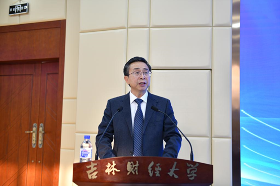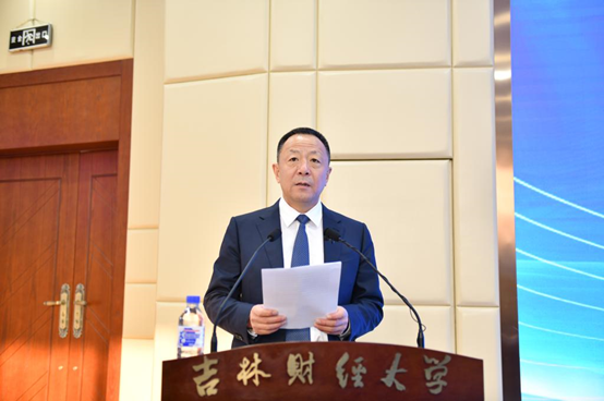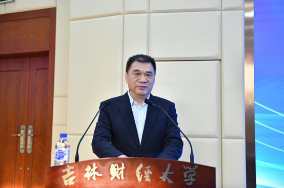 主旨演讲环节分两阶段进行,第一阶段主旨演讲由yl23455永利经理唐亚晖教授主持。农业农村部政策与改革司副司长王宾、青岛大学党委书记胡金焱教授、yl23455永利党委书记孙杰光分别作了题为《关于深化农村金融改革的思考》、《金融服务实体经济,助推“双循环”新发展格局的五大支柱》、《吉林农村金融综合改革总结与思考》的报告。