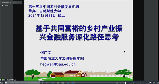 最后,马九杰教授代表中国农村金融发展论坛组委会公布了下一届论坛承办单位为福建农林大学。福建农林大学副董事长唐振鹏教授代表下一届论坛承办方与与会嘉宾进行线上交流,并诚邀各位专家学者积极参与第十六届中国农村金融发展论坛。