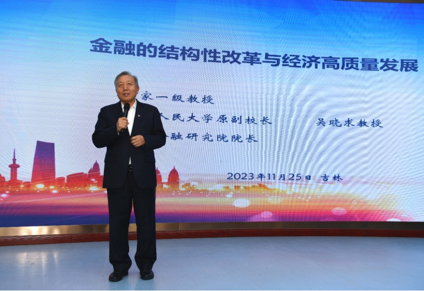 会议第一阶段的主旨报告由祝国平主持,中国人民大学原副董事长、国家金融研究院经理吴晓求教授首先作“金融的结构性改革与经济高质量发展”的主题报告.他围绕深入贯彻落实中央金融工作会议精神,加快建设“金融强国”,分析了金融结构性改革对实现经济高质量发展的重要意义。他强调了资本市场改革和人民币国际化是金融结构性改革的重要内容,并从理论研究和实践维度阐释金融科技创新对推动金融结构性改革的重要驱动作用。