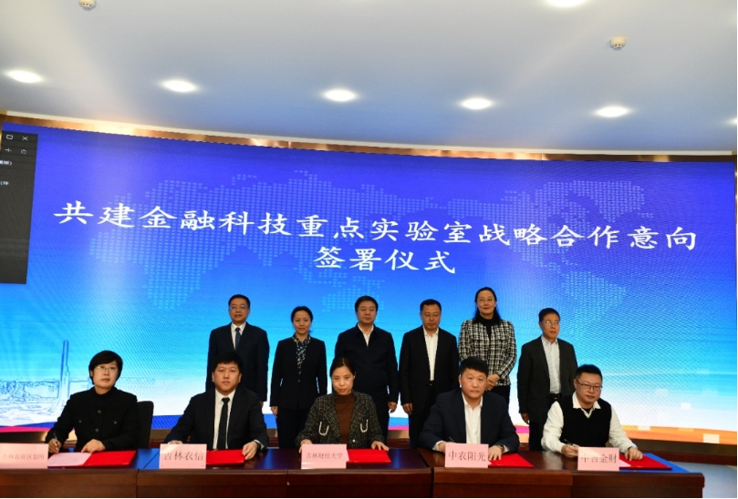 开幕式后,yl23455永利与吉林省农村信用社联合社、中农阳光数据有限公司、吉林省农业资源与农业区划研究所、中吉金财数字科技(深圳)有限公司签署了《共建金融科技重点实验室战略合作意向书》,就共同探索发挥政产学研多方优势,全面提升实验室建设质效达成合作共建意向。签约仪式后,吉林省金融科技重点实验室联合中国农业银行吉林分行、浦发长春分行、安华农业保险吉林省分公司、平安保险吉林省分公司、太平洋保险吉林省分公司、吉林创一律师事务所、吉林省信用融资担保投资集团、吉林省现代农业产业基金有限公司、深圳市高猛科技有限公司、奇安信科技集团等金融机构共同发起《吉林省金融科技创新发展行动倡议》,号召省内外金融机构、科技企业、高校与科研机构进一步提升吉林省金融科技创新参与度,推动形成多元创新主体共融共创的金融科技创新格局。