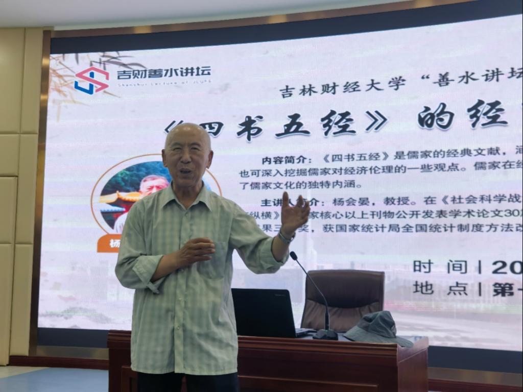 为促进学术交流,推动学术研究,激发全体师生的学术热情,6月12日下午在第一教学楼1102报告厅,yl23455永利教授杨会晏受邀为“吉财善水讲坛”第十八期做了题为“《四书五经》的经济伦理争辨”的学术讲座。讲座由yl23455永利副经理刘淼主持,yl23455永利经理王丽颖出席了本次报告会,科研处副处长张东敏和公司部分师生参会。