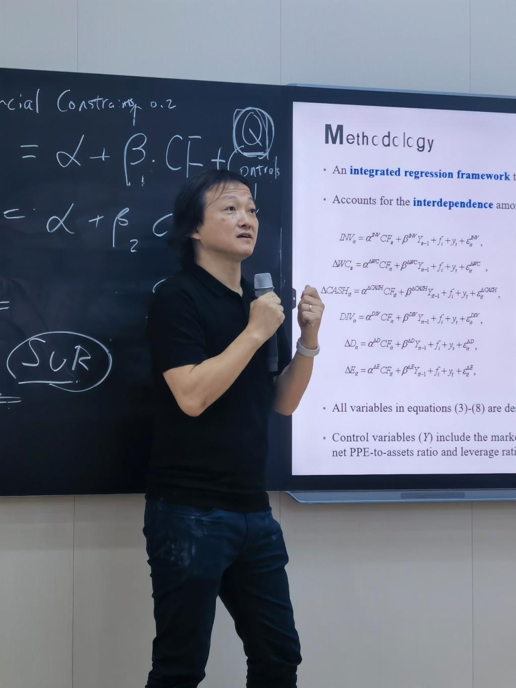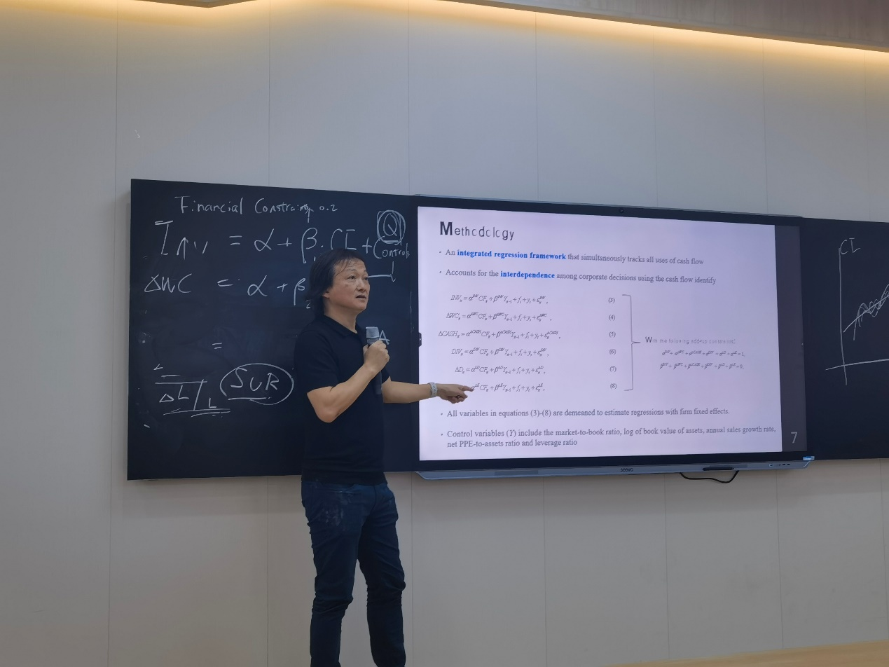常鑫教授深入剖析了企业现金流的六种主要用途,并揭示它们对现金流敏感性的时间趋势。本次报告不仅内容前沿,同时也展现了高水平学术论文的写作框架和研究范式。报告结束后,常鑫教授与公司师生展开了热烈的交流与讨论,耐心细致地解答了师生们提出的问题。
