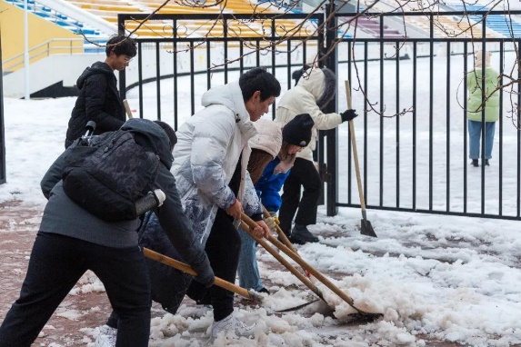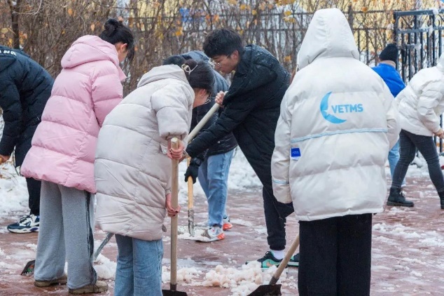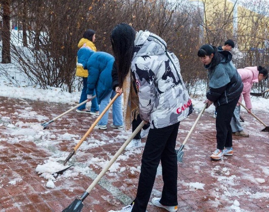 大家积极地投入到活动中,虽然积雪比较厚,天气比较冷,但丝毫没有影响同学的热情与工作效率。作为公司的一员,扫雪是责任,是义务。劳动的过程中充满了欢声笑语,大家乐在其中。扫雪队伍成了冬日校园一道靓丽的风景线。