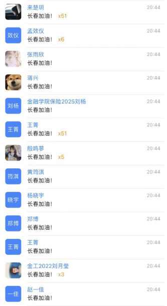 在观看影片之后,同学们皆感触颇深,联想到当下的情况,都自发的为长春应援。句句长春加油,句句饱含深情,大家都始终坚信长春一定能渡过难关,迎来春天。